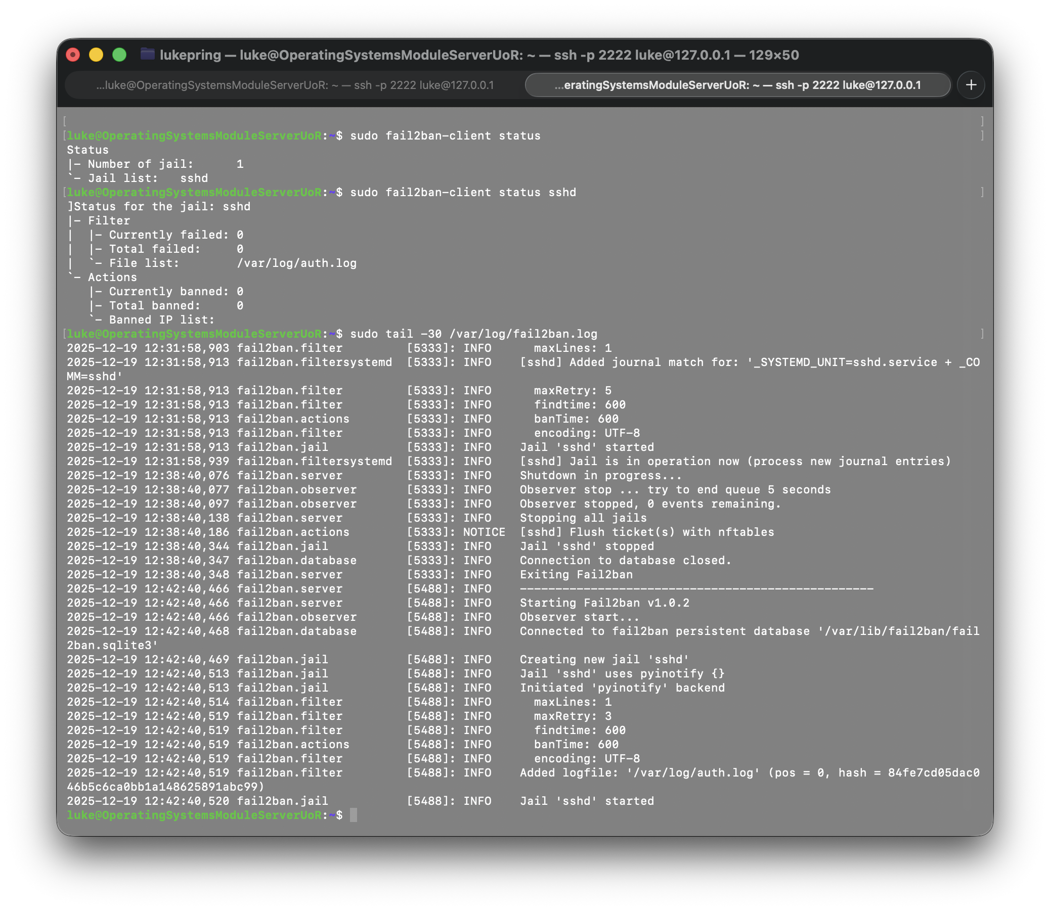 Below is a screenshot showing the monitoring of Fail2Ban: