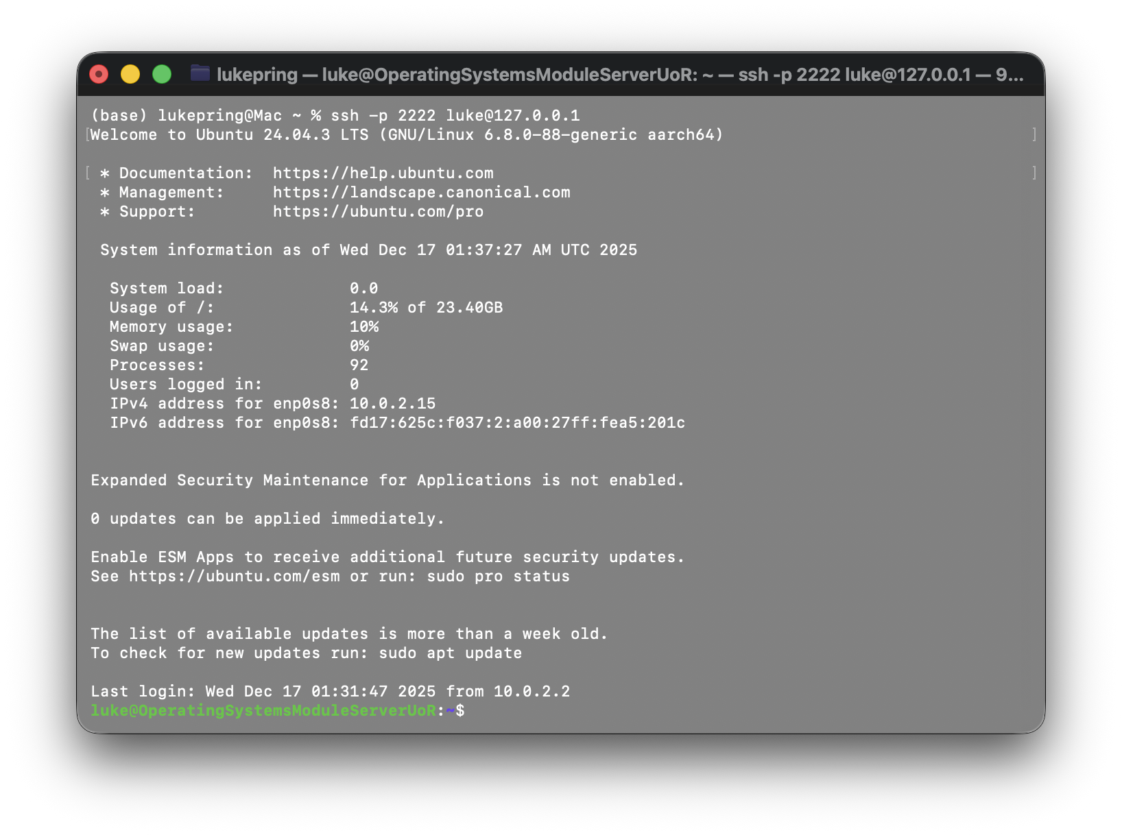 I chose to use the ARM64 version of Ubuntu Server. This is widely adopted in enterprise for good reason, as it offers a balance of stability and usability. This is important as it would be my first time configuring a Linux server. Ubuntu Server is easy to use, offering strong documentation and simple package management for additional software that may be needed for future tasks of the coursework.