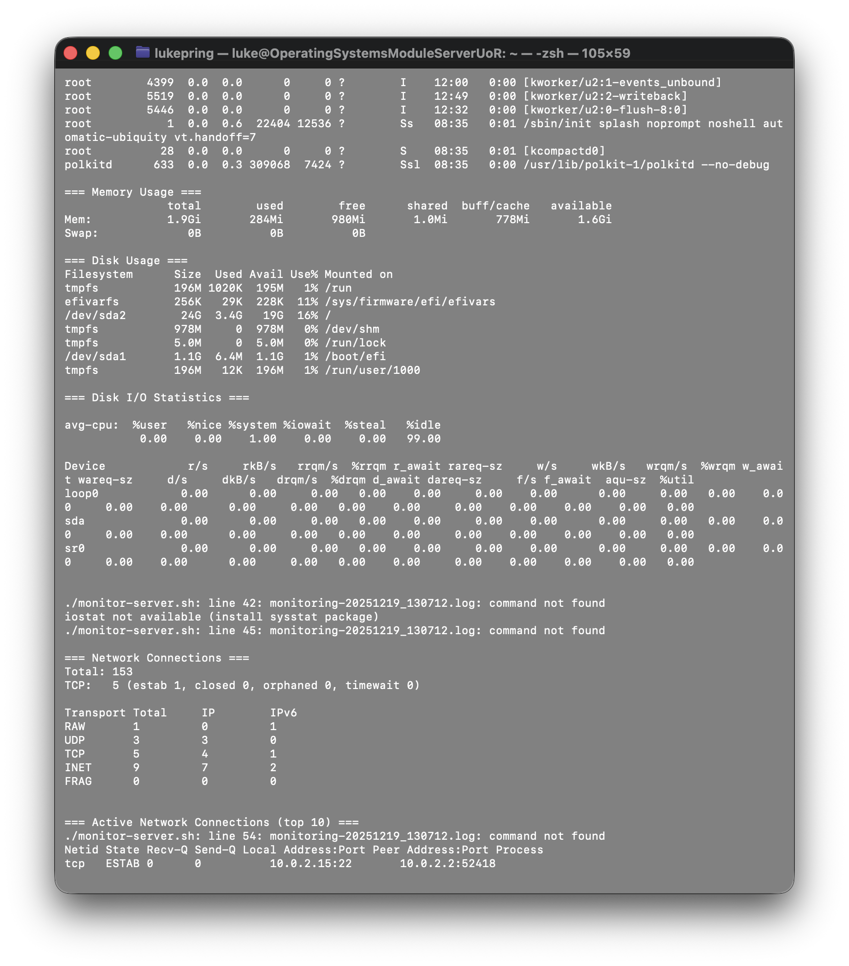 Similar to my last task, I created a remote monitoring script on my workstation using