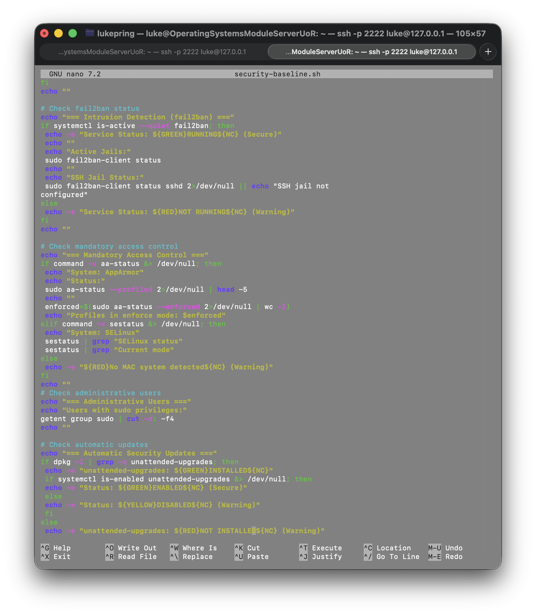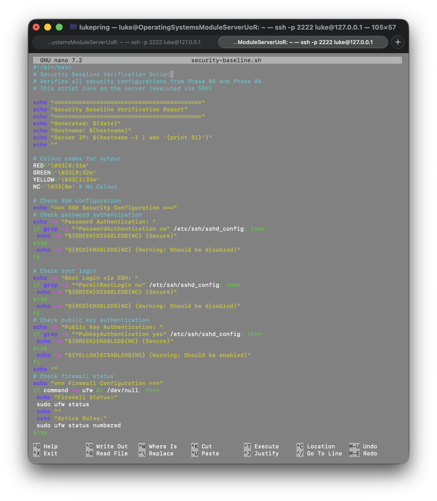 To create my security baseline script, I used the command nano security-baseline.sh and entered
