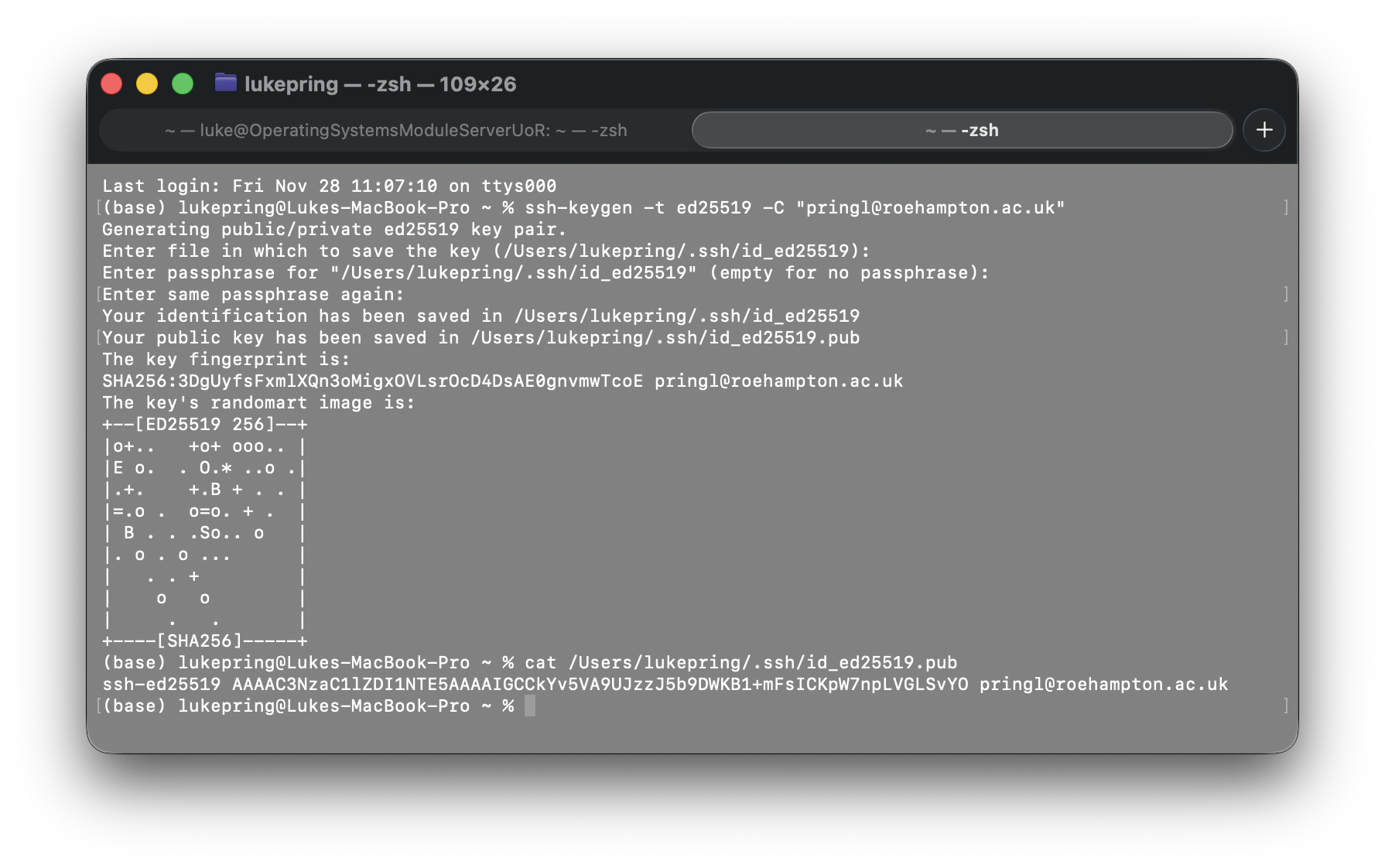 I started by generating an ed25519 key pair with my student email on my workstation.